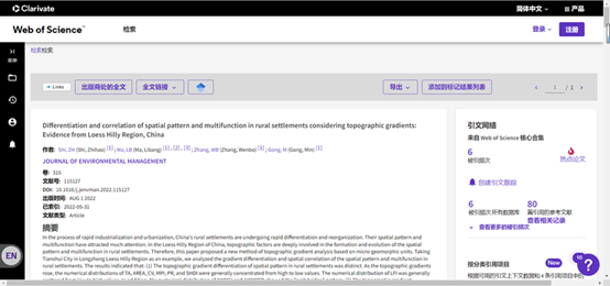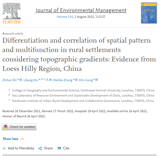 据近日公布的ESI(Essential Science Indicators)数据库最新统计数据显示,伟德BET官方网站马利邦教授为通讯作者、硕士研究生石志浩为第一作者在SCI二区Top期刊《JOURNAL OF ENVIRONMENTAL MANAGEMENT》(IF=8.91)上发表的论文“Differentiation and correlation of spatial pattern and multifunction in rural settlements considering topographic gradients: Evidence from Loess Hilly Region, China”入选ESI全球热点论文。该论文正式发表于2022年8月。