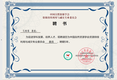 2022年11月19日,中国自然资源学会资源持续利用与减灾专业委员会换届会议在线上成功举行。本次会议是依据中国自然资源学会《关于同意资源持续利用与减灾专业委员会换届选举的批复》召开的。中国自然资源学会理事长成升魁研究员、副秘书长王捷出席了会议,来自全国各地的近百名代表参加了会议。在换届会议上,经无记名投票,选举产生了专委会主任、副主任、秘书长、副秘书长和委员。北京师范大学何春阳教授当选为专委会主任,公司马利邦教授、潘竟虎教授当选为委员,聘期5年。