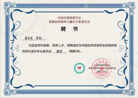 1993年2月,依据中国自然资源学会第三次全国会员代表大会决定,中国自然资源学会“资源持续利用与减灾专业委员会”正式成立。1994年1月10日,经中国科协批准,“资源持续利用与减灾专业委员会”挂靠单位为北京师范大学。该委员会成立的主要宗旨是在水资源、土地资源、矿产资源、生物资源、气候资源和海洋资源等单项资源研究的基础上,推动自然资源利用和减灾问题的区域综合研究。