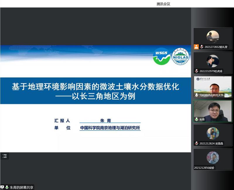 分享会上,朱青研究员首先阐述了研究背景,包括土壤水分的重要性、土壤水分获取方式、微波土壤水分产品及存在问题等;接着从微波土壤水分产品精度对比、多源微波土壤水分产品融合和土壤水分数据的空间降尺度三方面,重点围绕微波土壤水分产品精度与环境因素的关系、土壤水分融合产品精度及地理环境因素的重要性、土壤水分降尺度产品精度对比、考虑季节差异土壤水分降尺度精度对比、地理环境因素对降尺度精度的影响等进行了详细介绍。报告深入浅出,为相关专业的师生开阔了学术视野,拓宽了研究思路。会后,朱青研究员与线上参会师生进行了深入交流。