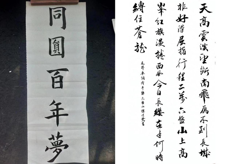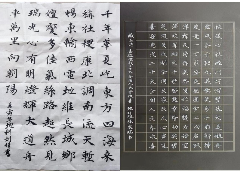 2020级地理信息科学班曾潇表示:“在学习、宣传党的二十大精神热潮中,以书法的方式回望历史,见证今天是极有意义的。浓墨重笔下,是党的峥嵘岁月,让落下的每一笔都凝重严肃,亦是党的初心不改。在伟大复兴征程上,我们将爱国之心寄于笔下,表达对祖国的浓情。”