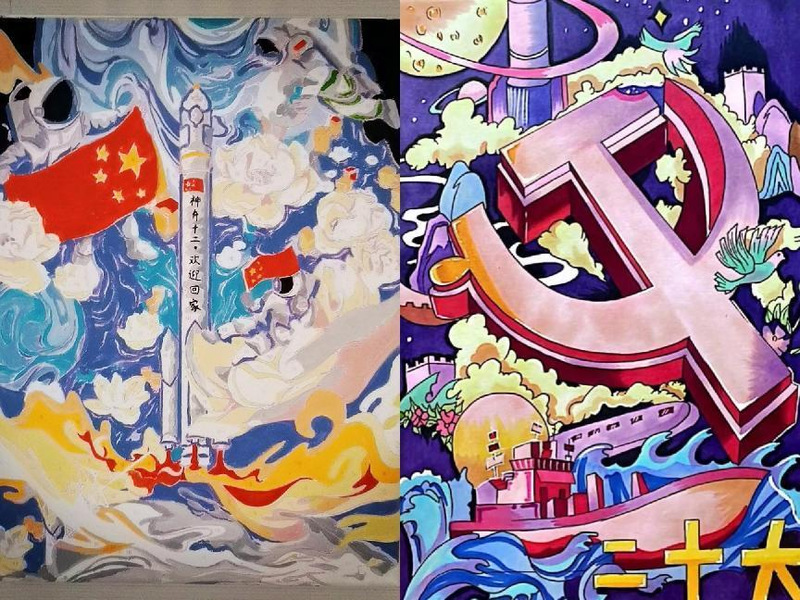 左《筑梦九天,华夏启航》 右《明烛长耀红船处》