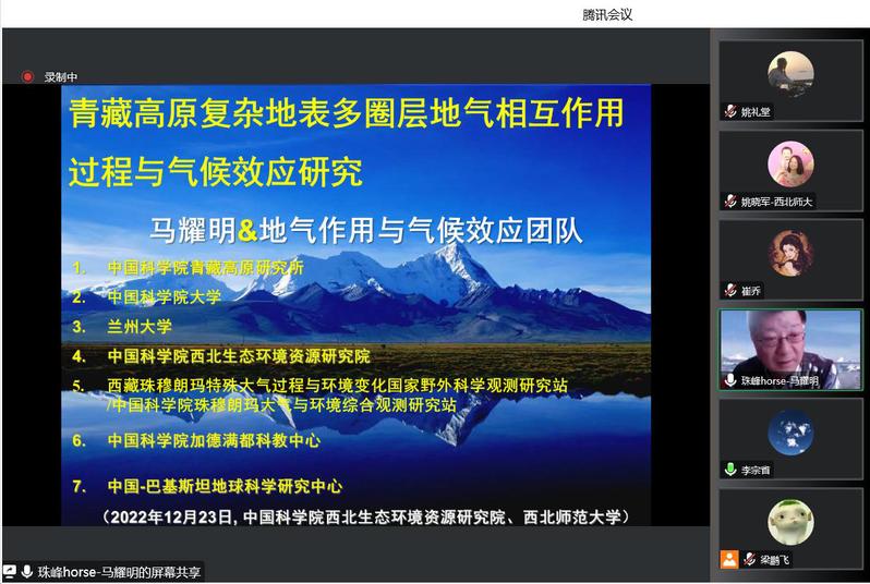 2022年12月23日,应伟德BET官方网站、甘肃省绿洲资源环境与可持续发展重点实验室、西北城乡发展与协同治理研究院邀请,中国科公司青藏高原研究所马耀明研究员做了题为《青藏高原复杂地表多圈层地气相互作用过程与气候效应研究》的学术报告,报告会由伟德BET官方网站副经理姚晓军教授主持,公司教师、研究生共200余名师生线上参加了本次报告,此次报告是研究生学术月“前沿讲坛”第七讲。