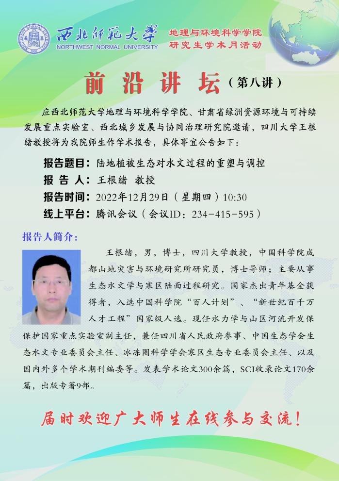 伟德BET官方网站研究生学术月活动系列之三——前沿讲坛:08 陆地植被生态对水文过程的重塑与调控