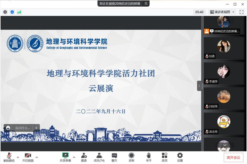 活动中,地理学社、环保学社、无人机协会、爱心天使西部助学会逐一展示社团充满活力的一面。其中,地理学社紧扣学科专业发展动态和前沿,为全校地理爱好者搭建以地理知识体系为主体、各类应用型知识经验传播为一体的专业性、知识性、娱乐性、示范性的交流平台。环保学社以“共舞绿色梦想,同创和谐家园”为宗旨,致力于环境保护和公益实践活动。无人机协会以培养员工创新能力、探究能力、组织能力、团队合作精神为出发点,激发同学们对无人机的兴趣。爱心天使西部助学会始终秉持“志愿服务教育,爱心奉献社会”的宗旨,发扬奉献、友爱、互助、进步的志愿者服务精神,组织开展了系列丰富多彩的活动,发起了助力青少年成长的公益项目,在志愿公益的道路上留下了青春的足迹。展演结束后公司团委书记曹珍璇老师对参与展演的社团给予了高度评价与认可,本次社团云展演取得了圆满成功。