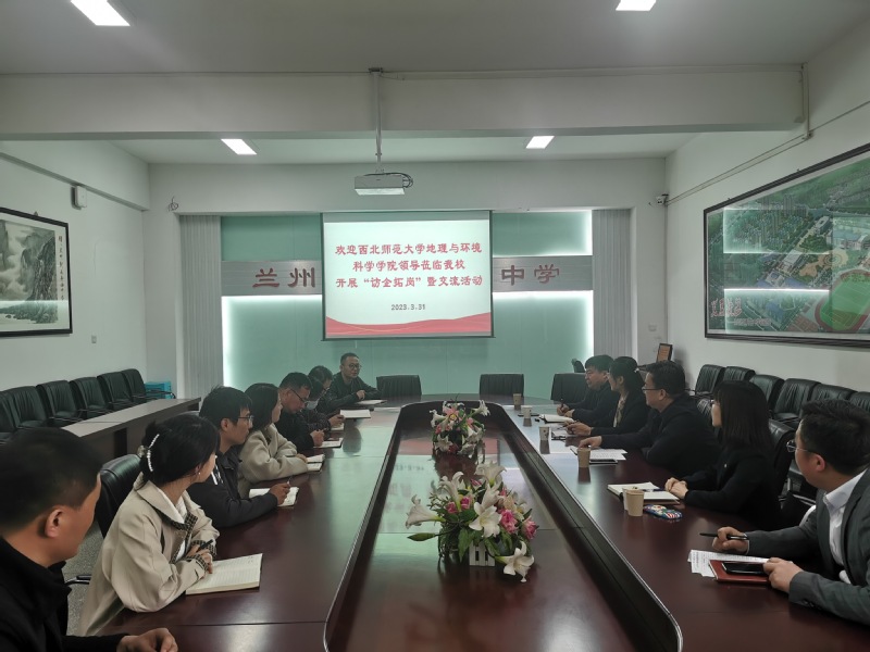 3月31日上午,地理与环境科公司党委书记于国建、副经理胡梦珺及班主任、专职辅导员一行赴兰州新区舟曲中学开展“访企拓岗”及交流座谈,并慰问实习生。舟曲中学副董事长韩乐中、副董事长蔺晨阳、课程教学中心主任杨超、地理教研组组长王占桂及岳继祥等7位一线地理教师参加此次活动。