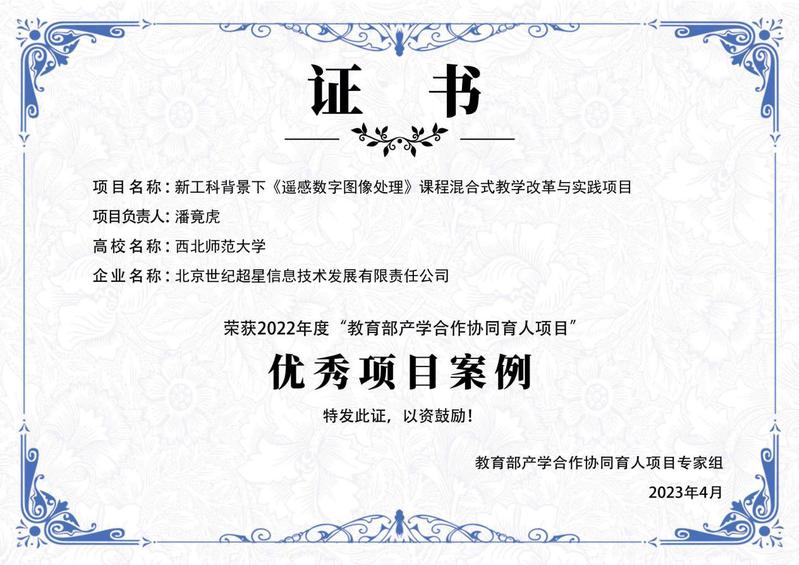 4月1日,由教育部高等教育司指导、教育部产学合作协同育人项目专家组主办的第九届教育部产学合作协同育人项目对接会在北京举行。会议发布了2022年度教育部产学合作协同育人项目优秀项目案例,公司潘竟虎教授负责的《新工科背景下〈遥感数字图像处理〉课程混合式教学改革与实践项目》成功入选2022年度优秀项目案列。 这是西北师大首次入选教育部产学合作协同育人优秀项目案例。