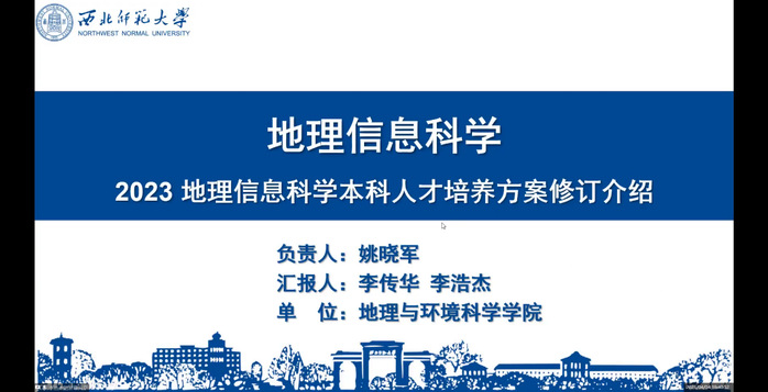 为贯彻落实人才培养新任务新要求,适应教学改革发展需要,有效提升本科人才培养质量,2023年4月4日地理信息学系组织召开了地理信息科学专业人才培养方案专家论证会。会议采用线上方式进行,兰州大学颉耀文教授、南京师范大学南卓铜教授和兰州交通大学王世杰教授对人才培养方案进行了审议,地理信息学系李传华副教授、张彦丽副教授、魏伟教授及部分年轻教师参加会议,会议由姚晓军副经理主持。