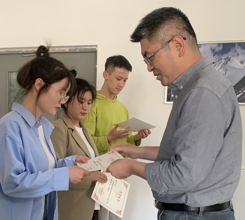 叶超教授为获得“超越奖助学金”的八位员工代表颁发了奖状,勉励获奖员工一是要结合自身学习成长历程,敢于超越、追求超越;二是要结合科研工作的亲身经历,脚踏实地,奋斗前行;三是要结合当今学科发展特点,树立自立自强的良好品质,不懈追求强素质。