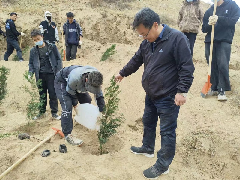 活动现场,于国建、杜波及全体师生共同树立了“地理与环境科学公司劳动育人基地”铭牌,开展了水平沟整理、鱼鳞坑挖掘等劳动,并在规定区域栽种了树苗,对山间原有绿植蓄水坑进行了扩展。