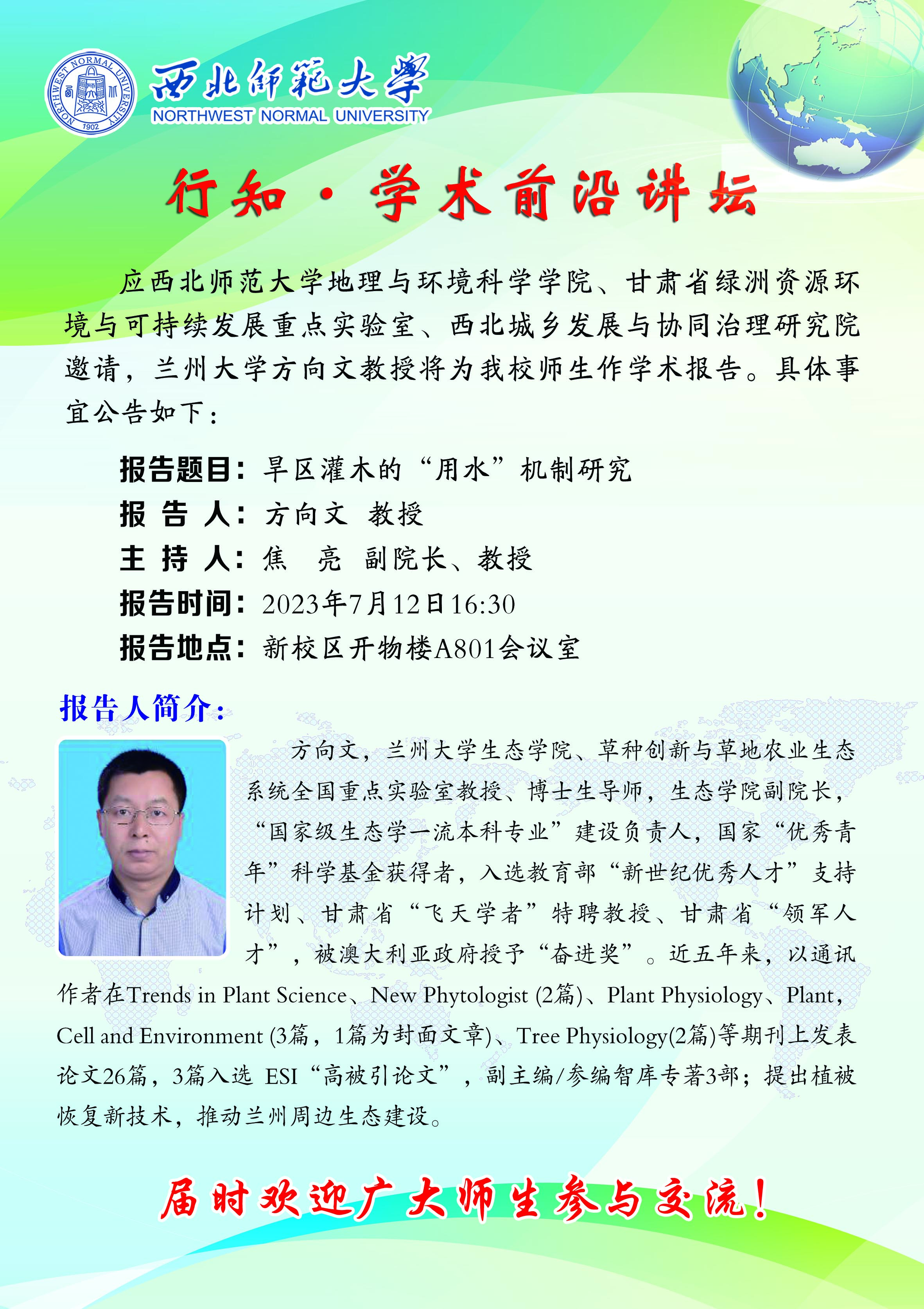 伟德BET官方网站行知•学术前沿讲坛 2023-07期:旱区灌木的“用水”机制研究