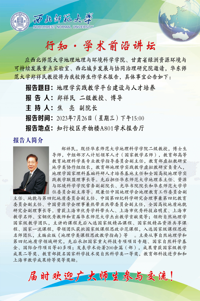 伟德BET官方网站行知•学术前沿讲坛 2023-09期:地理学实践教学平台建设与人才培养