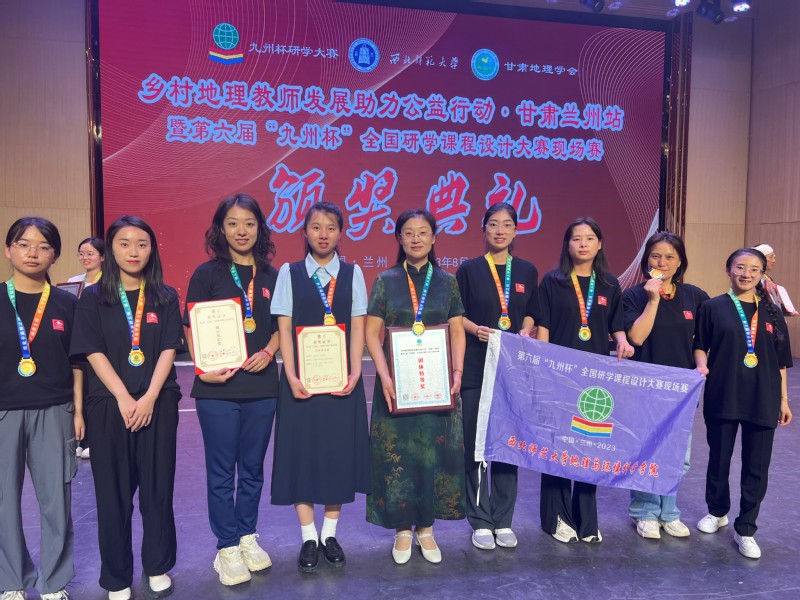 2023年8月9日至13日,由中国教育学会地理教学专业委员会指导、九州杯研学大赛组委会主办、伟德BET官方网站、甘肃省地理学会承办的第六届“九州杯”全国研学课程设计大赛在BET伟德官方网站举办,来自全国各地高校及中学的25支队伍参加了本次现场赛。由BET伟德官方网站“本硕一体生”刘薇担任组长、马昕梅、马秀英、邹欢及地理科学专业2020级本科生刘天霞、2022级本科生庄怡林组成的“伟德BET官方网站代表队”在胡梦珺副教授的指导下,斩获特等奖并同时荣获“展示风采奖”,成为本次大赛唯一的双料冠军;胡梦珺副教授荣获特等奖优秀指导教师。