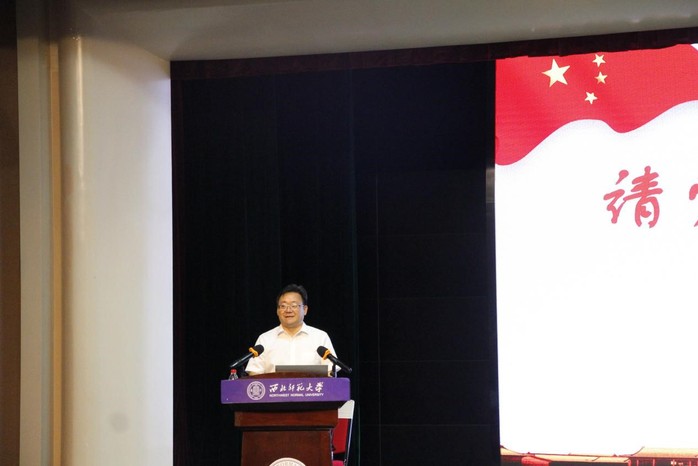 谢文涛副书记为新生做了“新起点、新目标”的专题报告,通过“大学是什么”“大学应该如何度过”“大学应该学会什么”“新生适应期怎么过”“典型案例分享”等五个板块,从正反两个方面,通过详实的典型案例分享和具体的操作要求,全面系统地介绍了新生如何才能更快更好地融入新的环境,适应新的环境,如何认识自己、做好自己和快乐自己;如何去排除苦恼,确立和规划好自己的发展目标,达到自己的学习目标。他要求所有的新生要有直面现实的勇气,有超越苦难的精神;要有披荆斩棘的魄力;要有创造未来的胆量;要永葆激情和梦想,铭记感恩和责任。希望2023级的同学们,都能放飞梦想,独立、自由、开放、快乐地过好每一天,明天母校因你而骄傲!