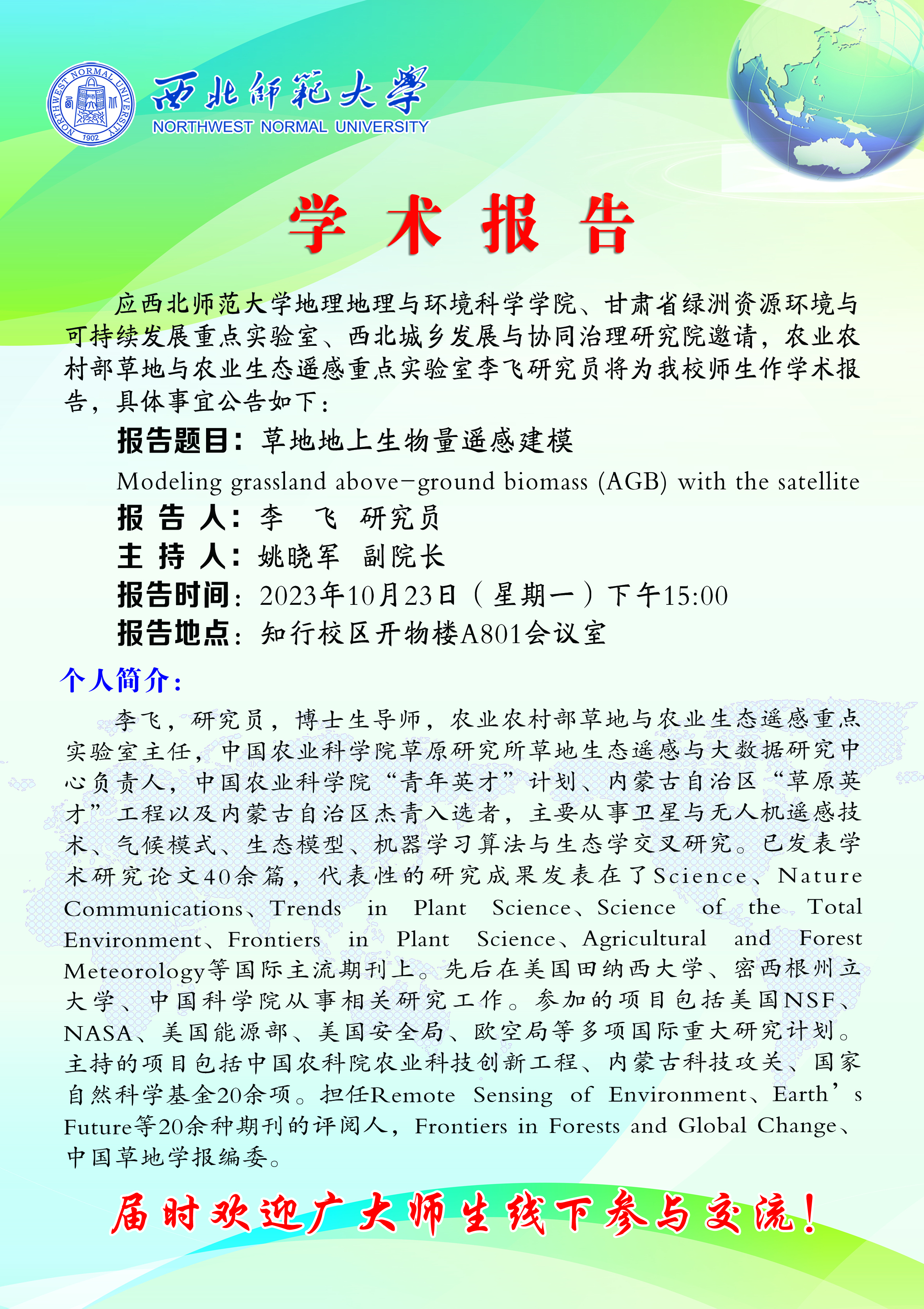 伟德BET官方网站行知•学术前沿讲坛 2023-14期:草地地上生物量遥感建模