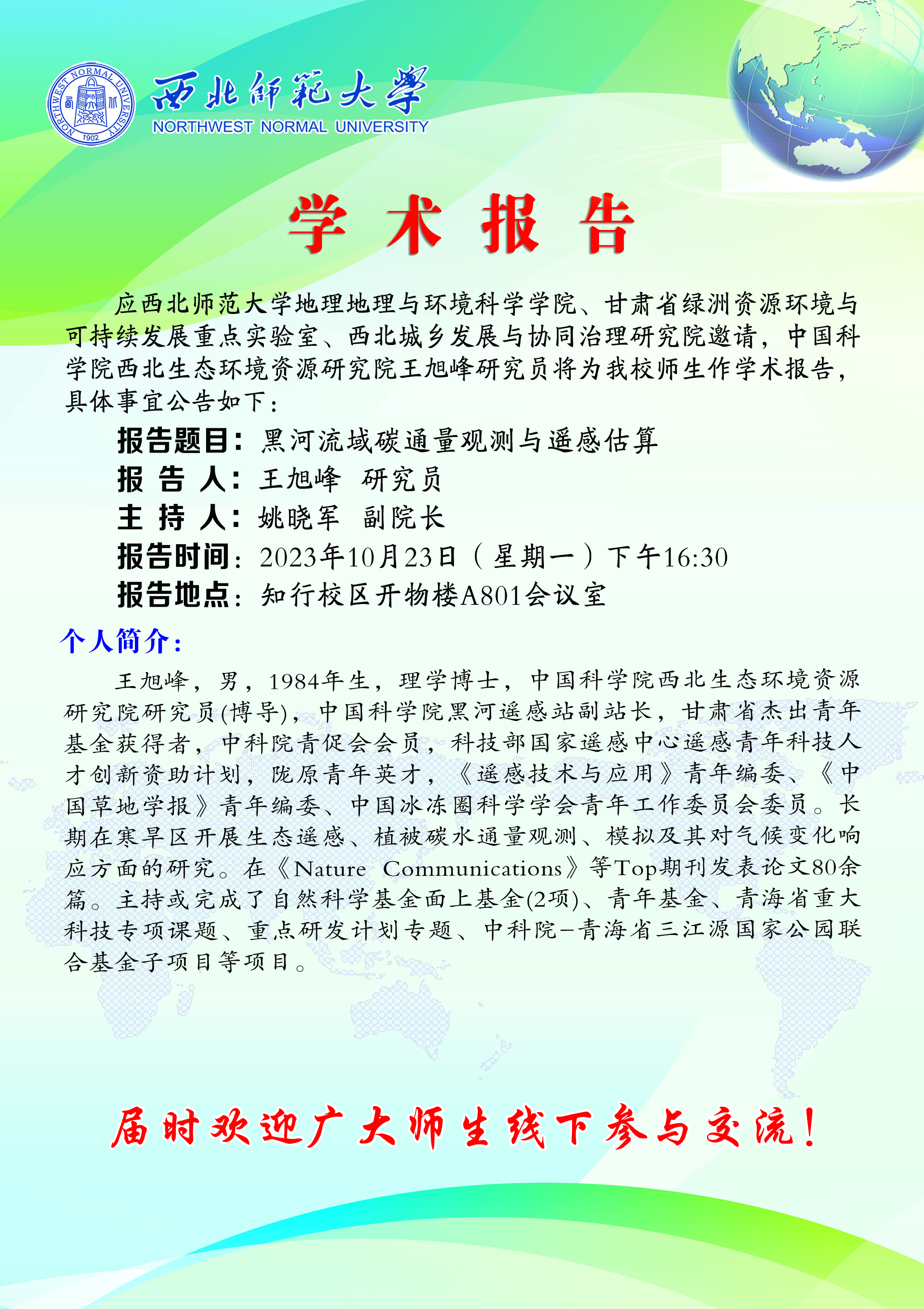 伟德BET官方网站行知•学术前沿讲坛 2023-15期:黑河流域碳通量观测与遥感估算