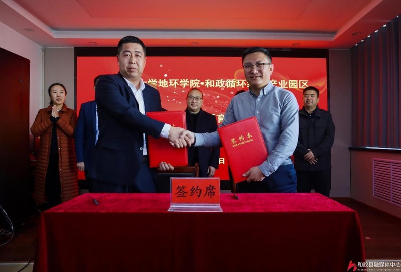 11月22日,伟德BET官方网站与和政循环经济产业园区签约暨产学研育人基地揭牌仪式在和政县举行,和政县委常委、副县长党文发,县委常委、副县长王琦,县直相关部门负责人,县园区管委会全体干部,园区部分企业负责人出席了会议,伟德BET官方网站经理马利邦,党委副书记、副经理谢文涛,副经理焦亮,党委委员、环境科学与工程系教工党支部书记瞿德业参加了签约暨揭牌仪式。