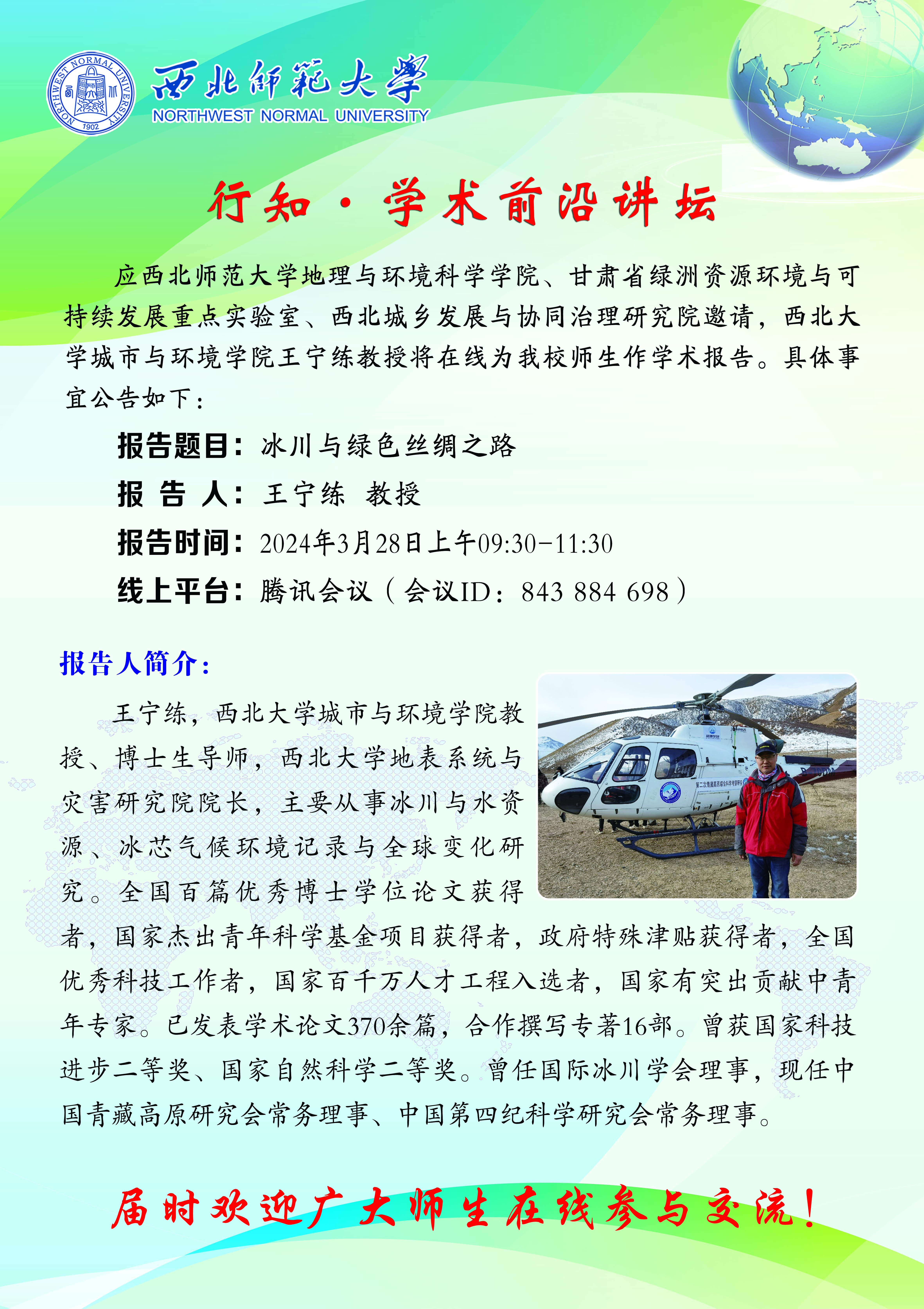 伟德BET官方网站行知•学术前沿讲坛 2024-03期:冰川与绿色丝绸之路