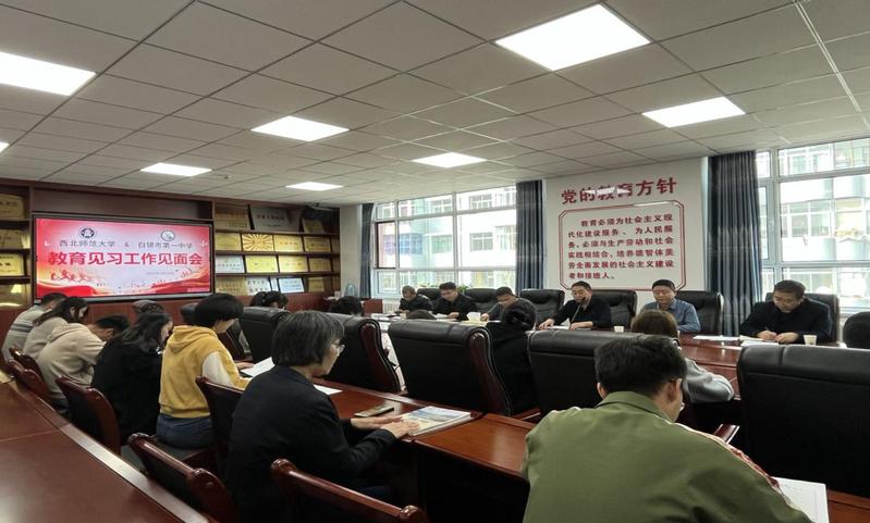 白银市第一中学在树慧楼召开了BET伟德官方网站“师德体验”教育见习工作见面会。白银市第一中学董事长邢耀田、书记张恩、副董事长杨延敏、韩兴瑞、主任席靖、杜鸿及各班班主任、专业指导教师与公司见习师生参加了本次见面会。会议由白银一中教务主任席靖主持,杨延敏副董事长对本次见习期间的具体要求、注意事项及逐日的见习内容做了详细的安排与部署,并强调了见习期间的安全问题;辛存林教授对白银市第一中学的全体师生表达了衷心的感谢,并要求全体见习生遵循见习公司的工作安排,多交流、勤思考、见习结束时能够实现预期目标、达到预期效果。