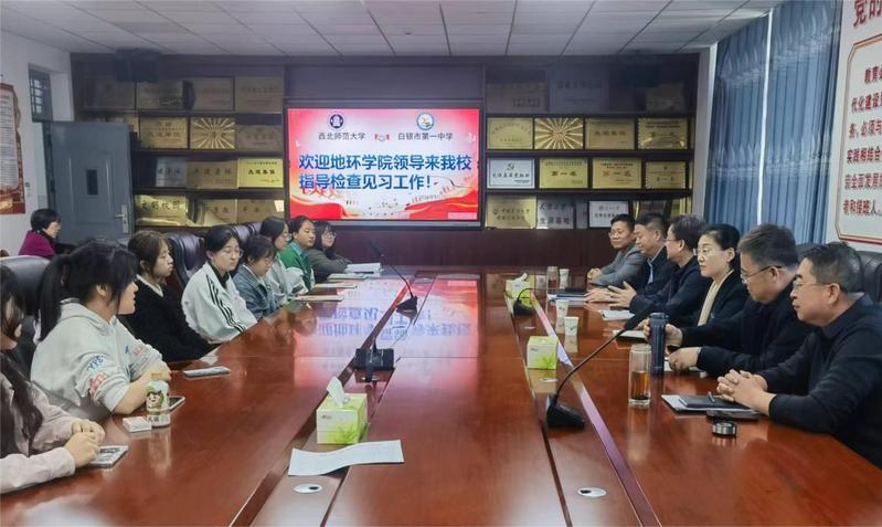 在白银市第一中学,带队教师、BET伟德官方网站校级教学督导辛存林教授向于国建一行汇报了一周的见习情况;白银一中董事长邢耀田、书记张恩作为BET伟德官方网站的老员工,热情介绍了公司概况及公司10名员工的见习情况,肯定了教育见习工作在师范生培养中的重要作用,并对教育见习工作提出了具体的意见和建议;张书记同时介绍了毕业于BET伟德官方网站的一中教师的工作和生活情况。