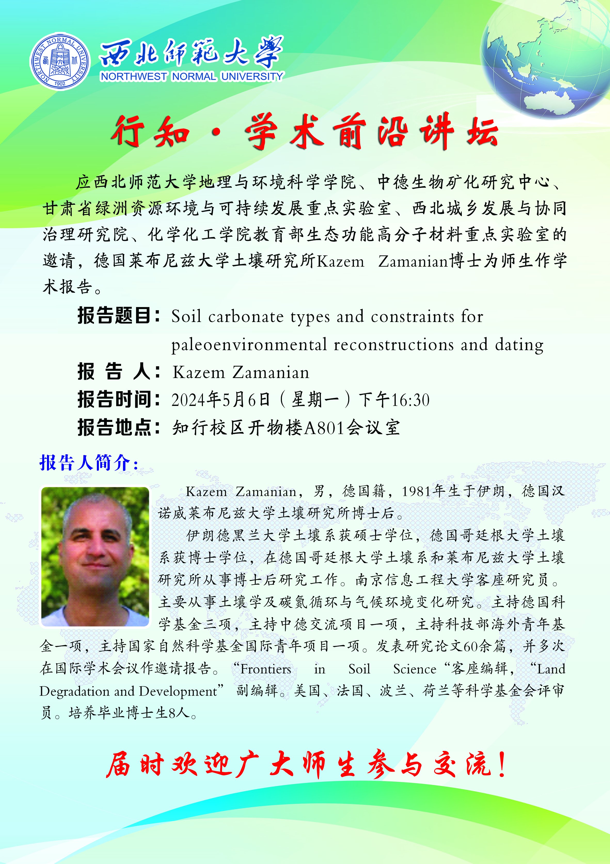 伟德BET官方网站行知•学术前沿讲坛2024-09期:土壤碳酸盐的类型及古气候的重建与测年