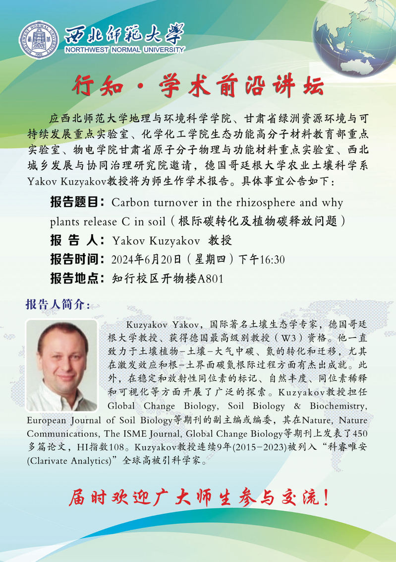 伟德BET官方网站行知•学术前沿讲坛2024-11期:Carbon turnover in the rhizosphere and why plants release C in soil(根际碳转化及植物碳释放问题)