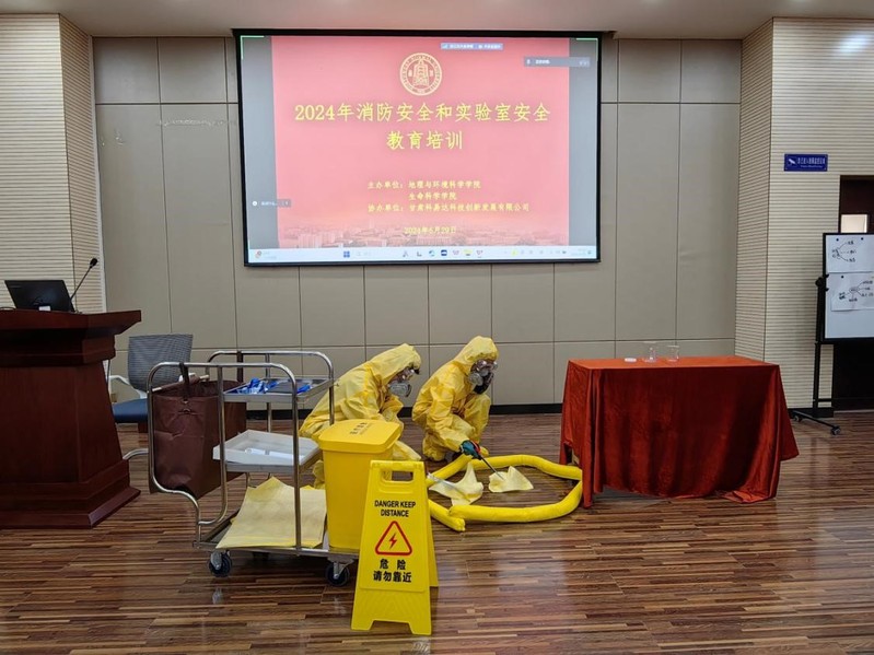 会议邀请北京卫民安消防教育咨询中心甘肃分中心张雨成教官和兰州大学兰景风高级工程师分别就消防安全和实验室安全进行了专题讲座,甘肃科易达科技创新发展有限公司的技术人员现场组织了实验室安全事故应急演练和知识竞赛。甘肃省化学会办公室主任王天新、公司党委书记于国建、生命科学公司实验中心副主任贾凌云、公司实验中心主任王继伟、实验中心全体教师以及伟德BET官方网站和生科院师生共计150余人参加了培训。会议由副经理潘竟虎主持。