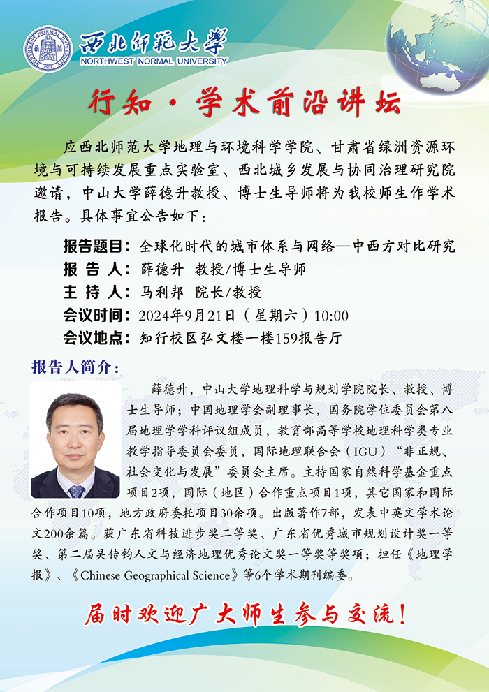 伟德BET官方网站行知•学术前沿讲坛2024-13期:全球化时代的城市体系与网络--中西方对比研究