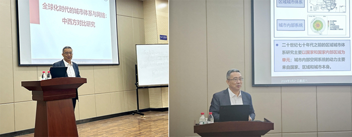 薛德升教授的报告题目为《全球化时代的城市体系与网络——中西对比研究》。报告伊始,薛教授从“昆山和东莞竞争台湾投资”“演绎穗深双城记”“香港和上海竞争迪士尼”等案例展开讲解,剖析了全球化时代区域间的竞争与合作态势、区域社会文化变迁的影响因素。在此基础上,薛教授向公司师生解读了全球化时代的城市地理研究进展,并结合伦敦、巴黎等实例,详细解释了世界城市与全球城市的概念。随后,薛教授结合弗里德曼提出的世界城市等级体系等西方学者的研究,解析跨国公司总部、高级生产者服务业机构等指标对构建世界城市体系、世界城市网络的贡献所在,并援引时空压缩、链锁网络模型等概念分析通讯技术变革为城市国际化带来的效益。最后,薛教授还为公司师生展示了世界城市的典型景观——以高级生产者服务业为主要景象的城市文化现象综合体,并从中进一步解读城市景观与社会文化现象之间的关系、景观维护与管理等研究内容。