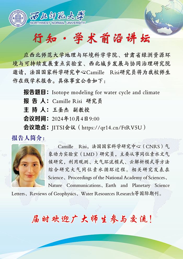 伟德BET官方网站行知•学术前沿讲坛2024-14期:Isotope modeling for water cycle and climate