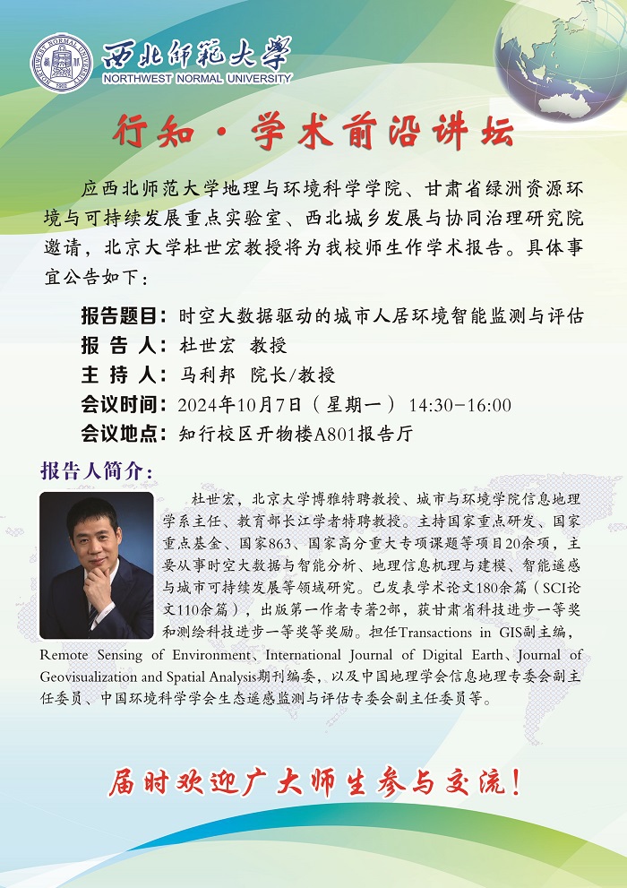 伟德BET官方网站行知•学术前沿讲坛2024-15期:时空大数据驱动的城市人居环境智能监测与评估