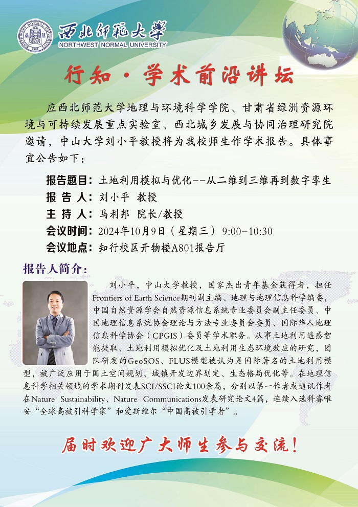 伟德BET官方网站行知•学术前沿讲坛2024-18期:土地利用模拟与优化--从二维到三维再到数字孪生