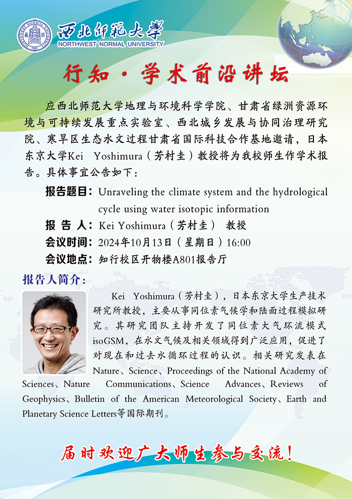 伟德BET官方网站行知•学术前沿讲坛2024-20期:Unraveling the climate system and the hydrological cycle using water isotopic information