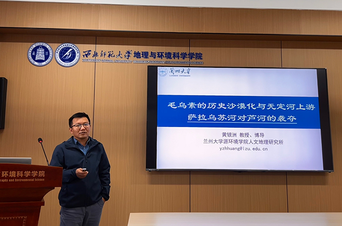 黄银洲教授的报告题目为《毛乌素的历史沙漠化与无定河上游萨拉乌苏河对芦河的袭夺》。毛乌素沙地位于我国北方干旱、半干旱地区,是沙漠化问题严重的区域之一。黄银洲教授及其团队通过对该区域进行深入研究,旨在探讨毛乌素沙地的历史沙漠化过程及其成因,以及无定河上游河流的演变对周边环境的影响。