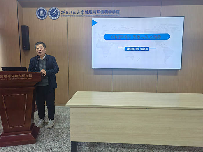 佟连军研究员以《地理科学》发展与发文趋势为报告主题,分别从办刊历史、宗旨、特色、社会评价、影响力以及近期出版情况等方面入手,向公司师生详细介绍《地理科学》杂志的基本情况。接着,佟连军研究员援引期刊组织实施所需的学术、物力、出版及传播保障,阐释专家队伍、主办方、编辑团队以及新媒体传播平台对于支撑《地理科学》办刊的重要性。随后,佟连军研究员结合自然地理学、人文地理学及信息地理学的研究动向,解析期刊的专题组稿及其设计需要怎么做才能更好地服务国家区域发展战略。最后,佟连军研究员结合编委工作实际,详细说明文章初审和学术把关中遇到的普遍问题,进而引发公司师生思考科技论文写作及投稿需要注意的选题、逻辑、创新性和行文格式等方面的问题。