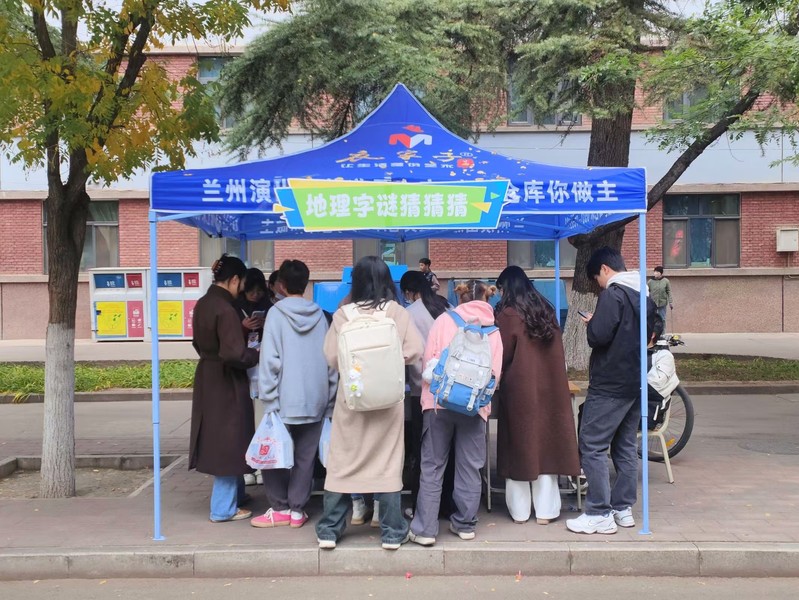 在“地理字谜猜猜猜”环节,字谜题目和提示让参与者们绞尽脑汁。他们认真思考每一个字谜的答案。成功猜出答案后,他们还能准确说出该地相对于甘肃省的所在方位和周围地级市,展现出了出色的地理方位感。