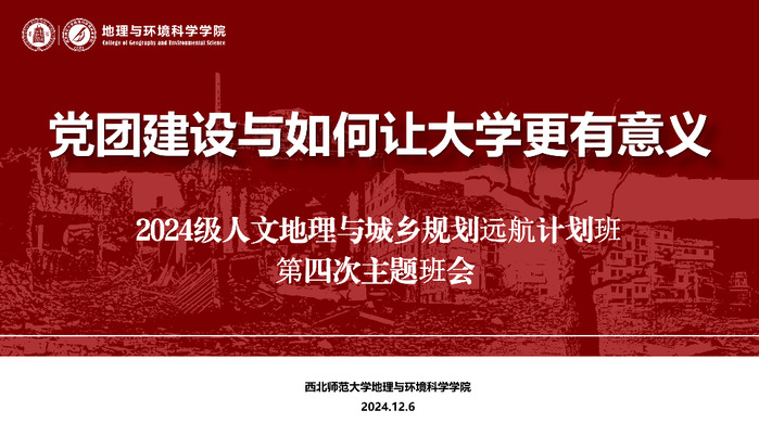 为引导新时代老员工坚定信念、立报国强国大志向、做挺膺担当奋斗者,根据公司《关于进一步加强班主任队伍建设“远航计划”工作的通知》,2024年12月6日下午,2024级人文地理与城乡规划“远航计划”班召开第四次主题班会,公司副书记、副经理、导航班主任谢文涛,护航班主任王祥及全体同学参加此次班会。