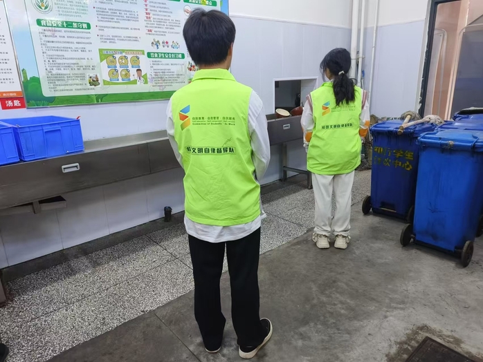 值班期间,志愿者们积极参与食堂值班工作,认真履行职责,提前到岗。他们不仅帮忙分发餐具或收取餐盘,而且以热情的笑容和细致的服务,让同学们感受到了家一般的温暖。