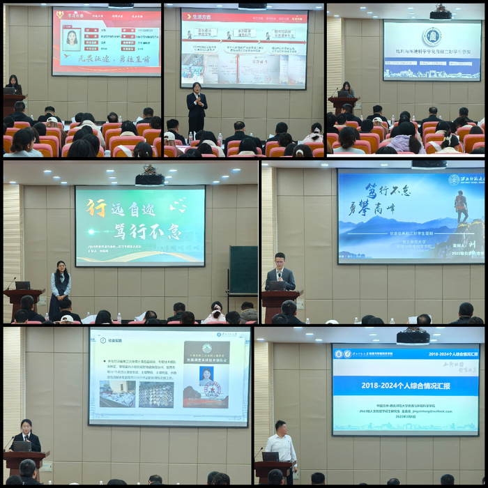 经个人自主申请,班级与班主任推荐,公司审核等环节,参与此次评选的推荐候选人共7位。推荐候选人依次从思想品德、专业学习、竞赛科研、综合素质等方面进行个人风采展示。各位候选人能力出众,各有所长,受到在场教师的认可和赞扬。会后,评委老师结合各位同学提交的资料及PPT展示,按照学业成绩、学术科研、校园文化、社会实践四部分进行打分,最终推荐任智贤等 6名同学为公司甘肃省三好员工拟推荐人选。