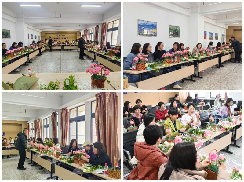 在插花活动中,邀请了专业花艺师现场做指导,耐心地教大家学习插花技巧。在花艺师的引领下,大家仿佛进入了一个美丽的花艺世界,亲手挑选鲜花、修剪枝叶、搭配色彩,感受着花艺的魅力。在亲手学习插花艺术的过程中,各位老师不仅放松了身心,还培养了审美情趣,进一步丰富了生活内涵,为节日增添了浓厚的文化韵味。
