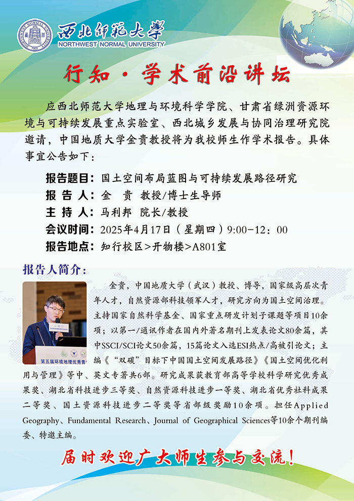 伟德BET官方网站行知•学术前沿讲坛2025-06期:国土空间布局蓝图与可持续发展路径研究