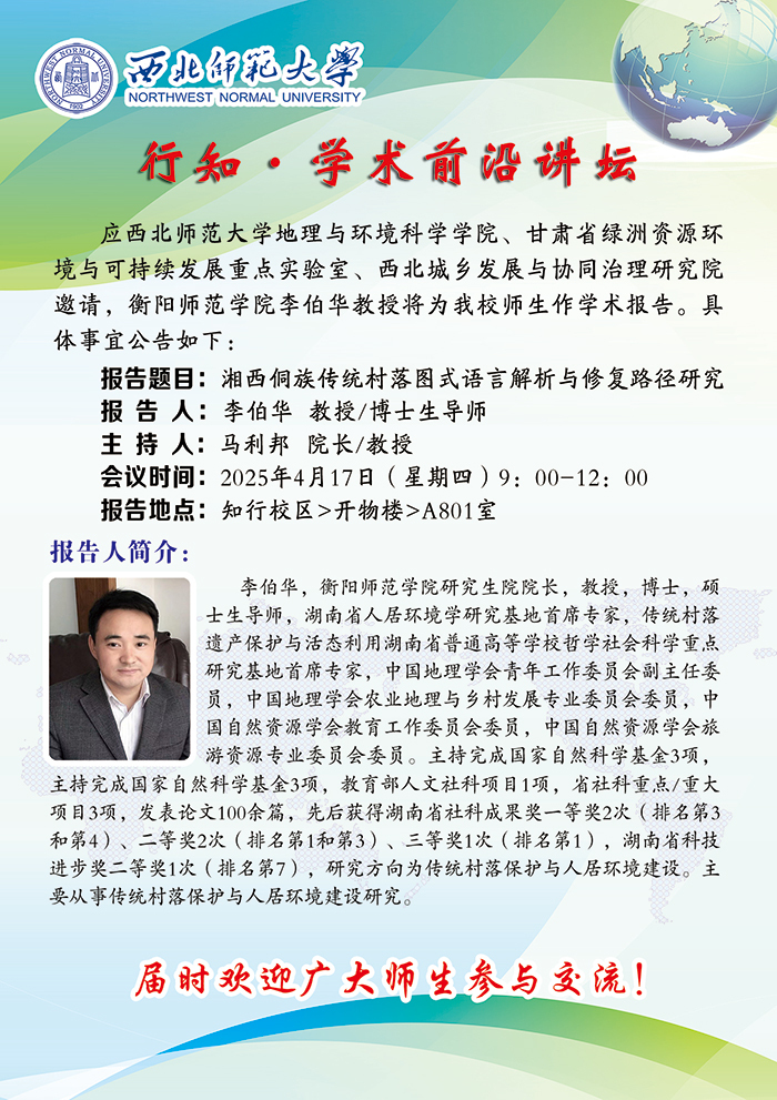 伟德BET官方网站行知•学术前沿讲坛2025-07期:湘西侗族传统村落图式语言解析与修复路径研究