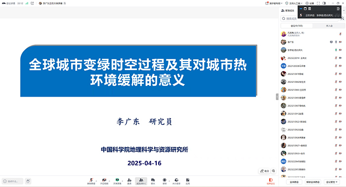 2025年4月16日,应伟德BET官方网站、甘肃省绿洲资源环境与可持续发展重点实验室、西北城乡发展与协同治理研究院邀请,中国科公司地理科学与资源研究所研究员、博士生导师李广东作题为《全球城市变绿时空过程及其对城市热环境缓解的意义》的学术报告。本次报告会在线上平台(腾讯会议)开展,由伟德BET官方网站副经理张学斌教授主持,公司师生共200余人参加报告会。