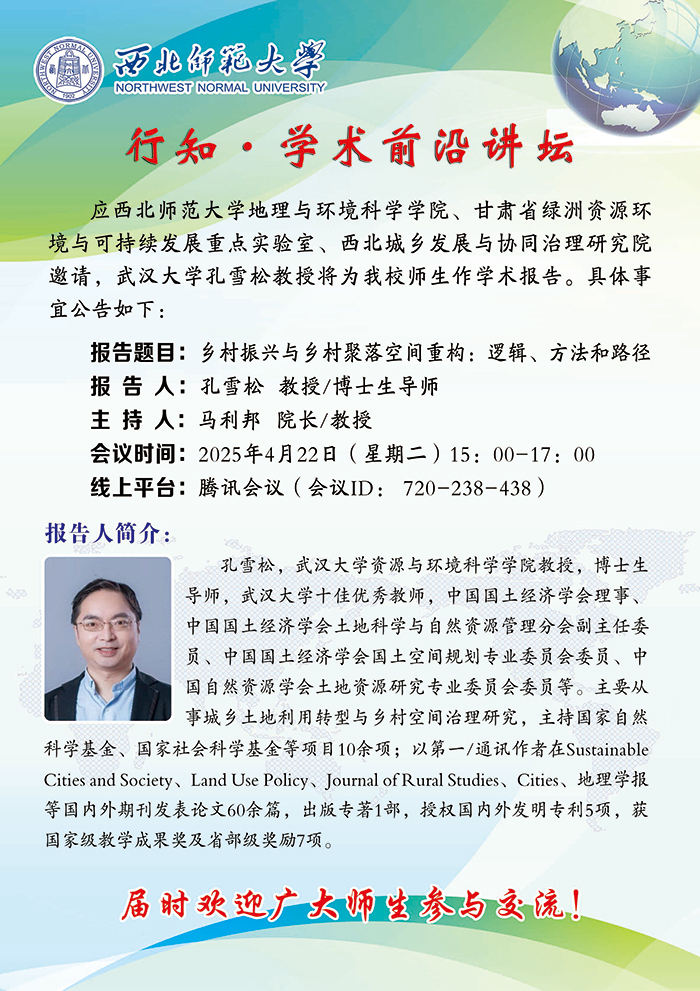 伟德BET官方网站行知•学术前沿讲坛2025-09期:乡村振兴与乡村聚落空间重构:逻辑、方法和路径