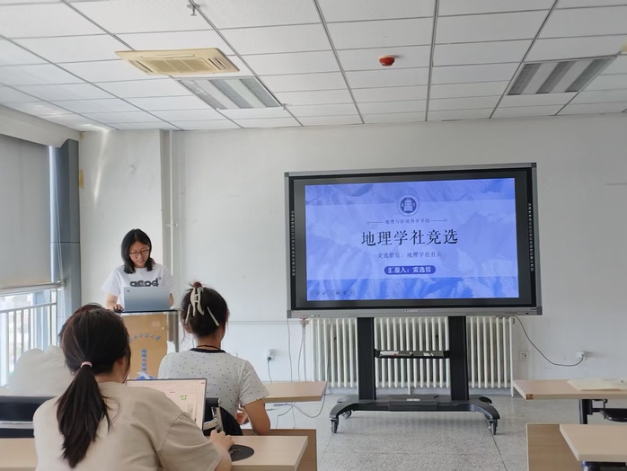 雷逸恬同学参与本次地理学社社长一职的竞选,围绕自身对地理学社的理解、过往相关经历以及个人优势展开阐述。