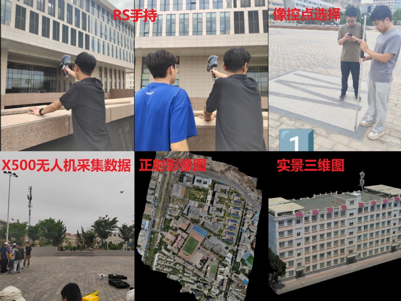 实践操作:以X500型无人机和SLAM系列手持观测设备为例,通过分组实操训练,完成了知行校区倾斜摄影测量、激光雷达数据采集、建筑物点云数据获取,并利用专业软件生成了高精度正射影像图和三维实景图;