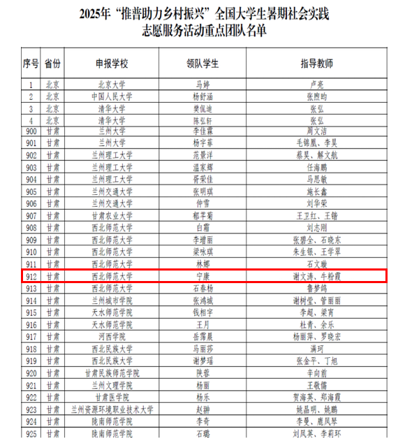 73日,教育部官网公布了2025年“推普助力乡村振兴”全国老员工暑期社会实践志愿服务团队名单,伟德BET官方网站由2023地理科学2班宁康同学为队长,谢文涛、牛粉霞老师指导的“语润大河,声连临夏”推普实践团从全国1680所高校的8013支团队中脱颖而出,再次成功入选全国重点团队。