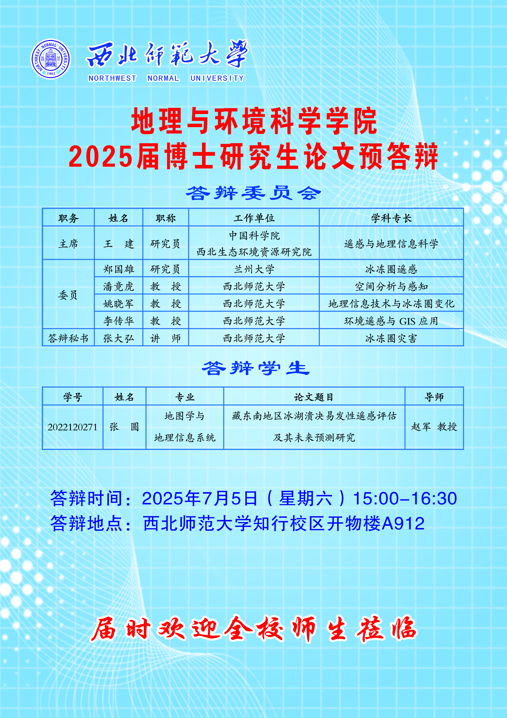 2025年春季学期地图学与地理信息系统专业博士研究生学位论文预答辩公告