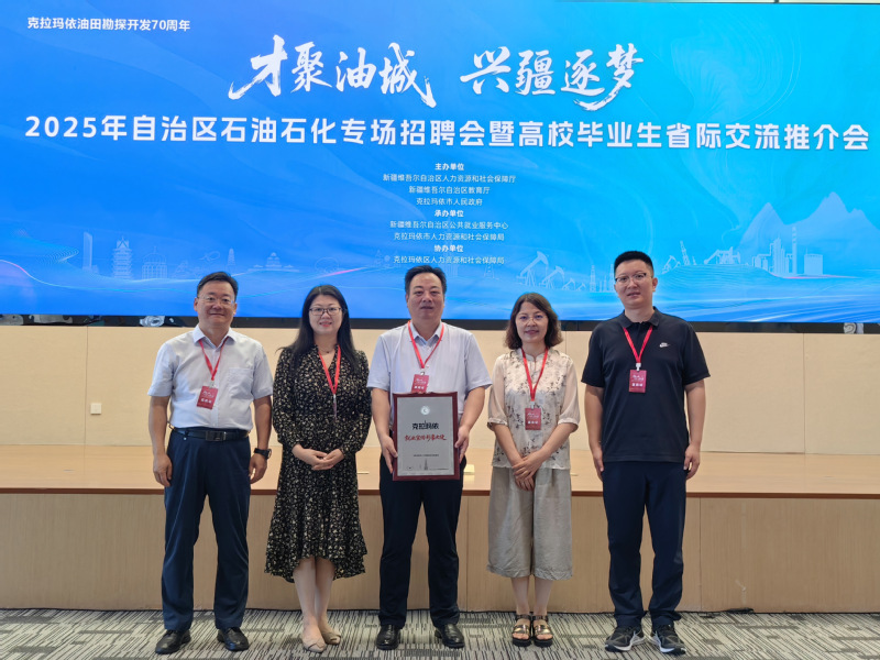 据悉,本次活动吸引了全国62所高校、141家企业及3000余名求职者参与,通过座谈、对接、访企等多种形式,架起了跨区域就业与产业人才培育的桥梁。公司就业与员工事务处负责人被授予“克拉玛依市就业宣传形象大使”荣誉称号。