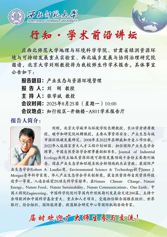 伟德BET官方网站行知•学术前沿讲坛2025-16期:产业生态与资源环境管理